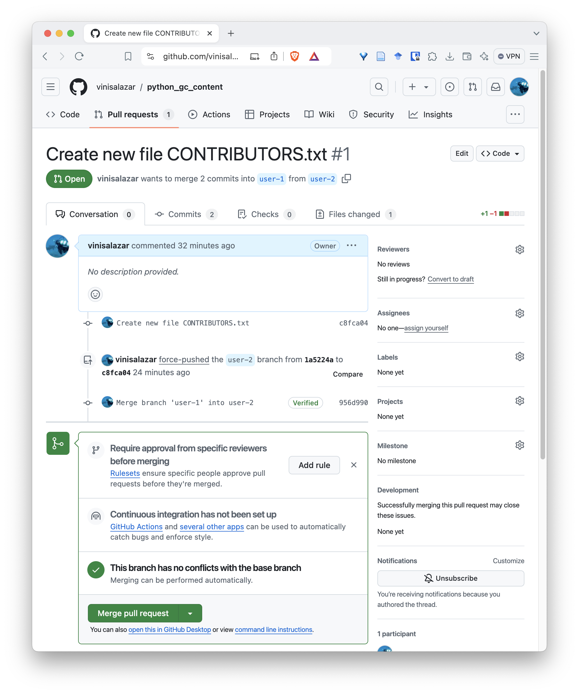Don’t merge the pull request just yet! Let’s finish our review first.