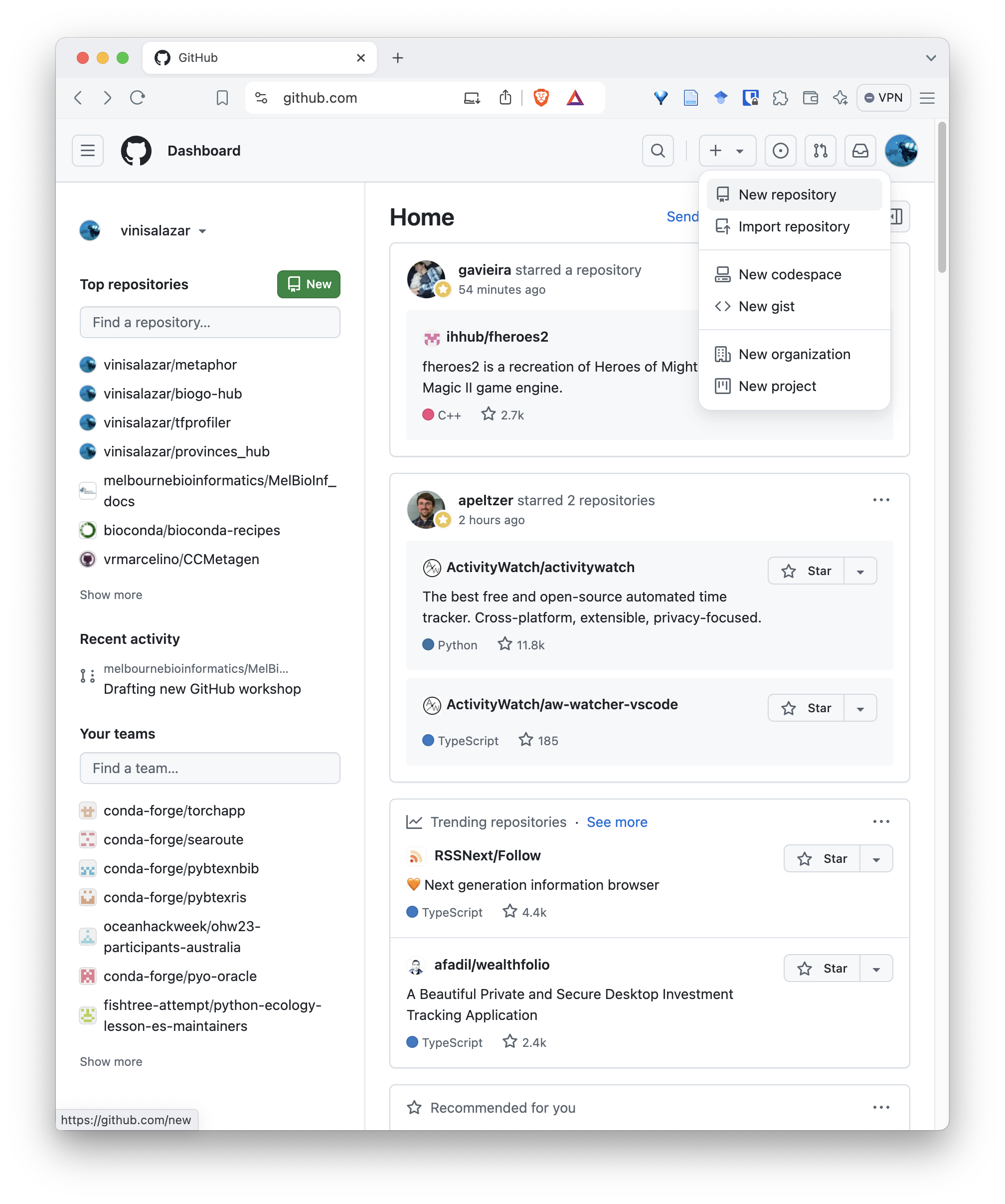 - Open GitHub, and click on the