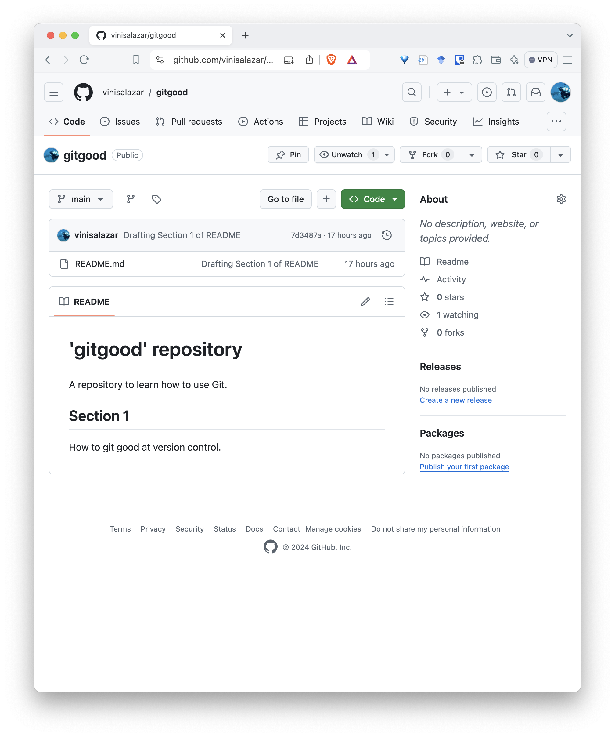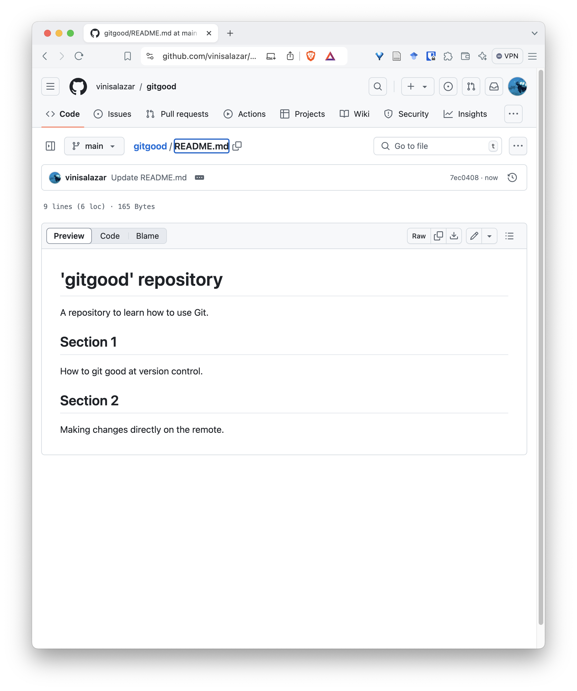 - Your file should reflect the update you’ve just made. Notice the commit stamp on the top.