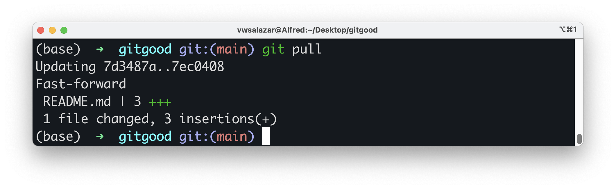 git pullcommand pulls remote changes to our local repository. We need to run it to sync our local repository to the newest updates on the remote. - The
