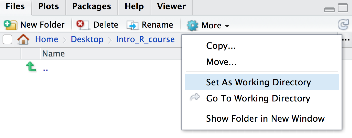 setwd("~/Desktop/intro_r_course"). As well as the