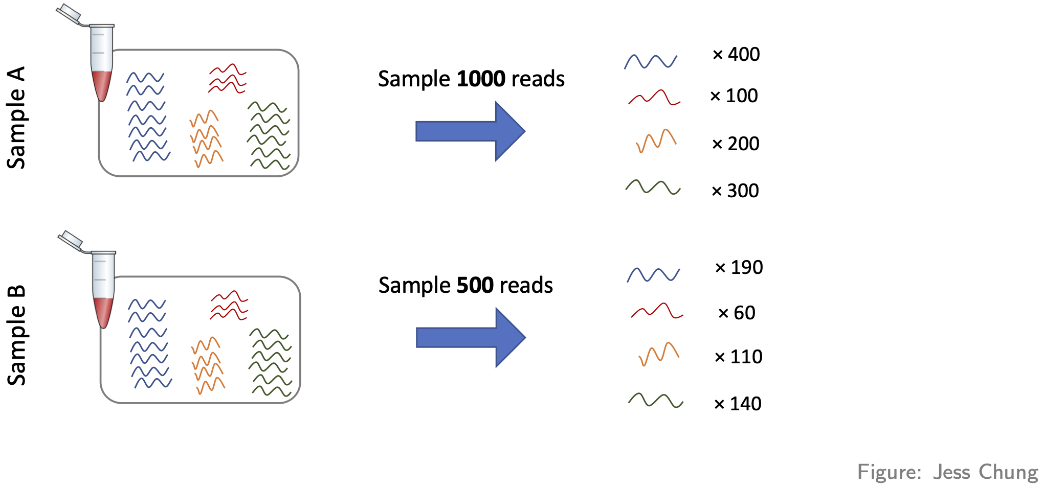 Two important technical differences between samples are (1) library size differences and (2) compositional differences: