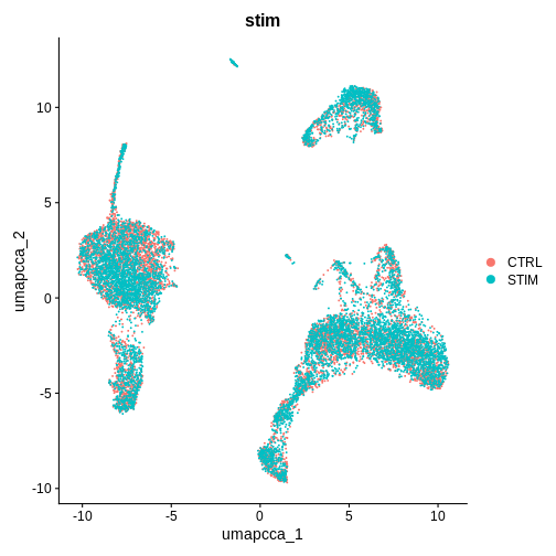 DimPlot(ifnb.filtered, reduction = "umap.cca", group.by = "stim")