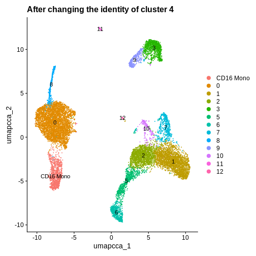 # I happen to know that the cells in cluster 4 are CD16 monocytes - lets rename this cluster